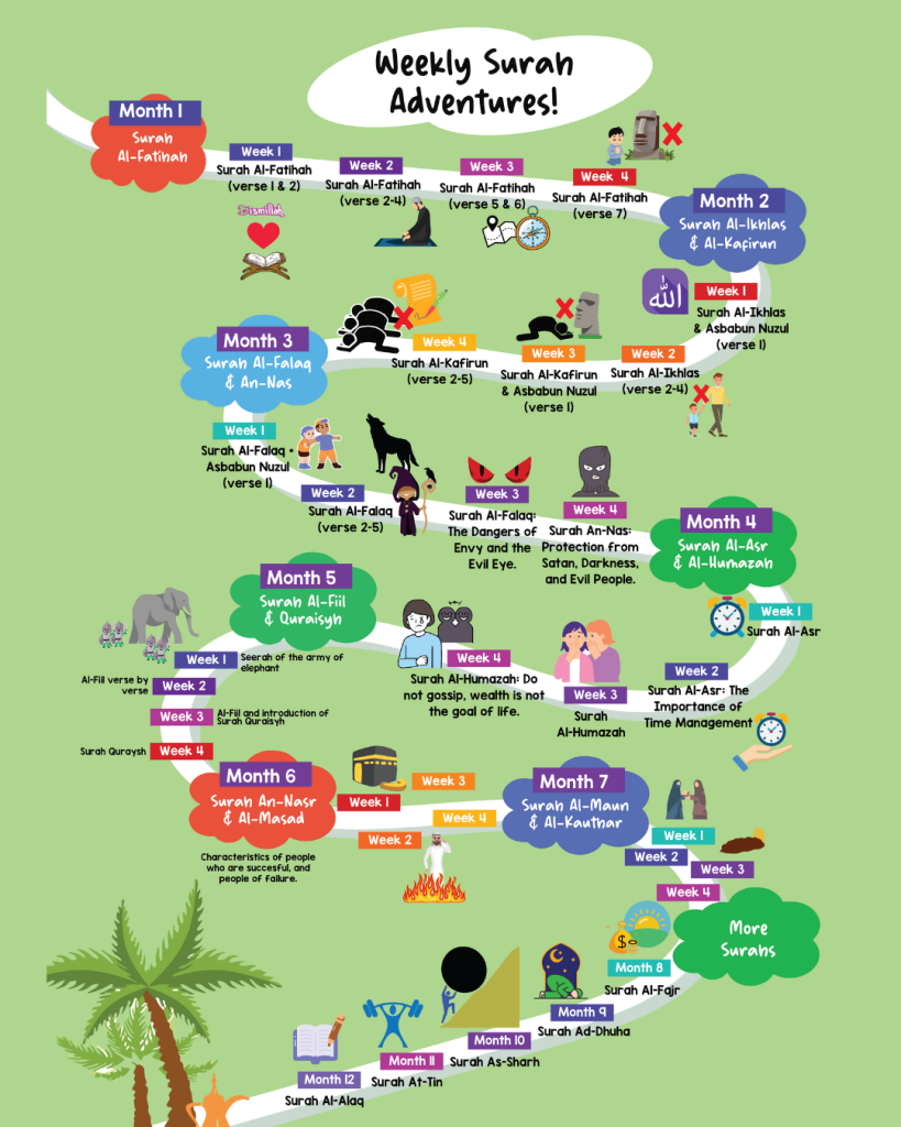 This class is all about helping children understand the short surahs of the Quran, starting with Surah Al-Fatihah.