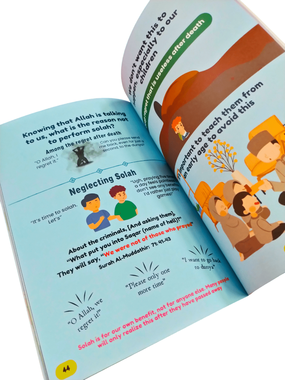 It’s essential to help them build a connection with Allah through Solah. But first, we need to help them understand who Allah is. We can strengthen their foundation with simple analogies and fun facts where you can find in this book in shaa Allah.