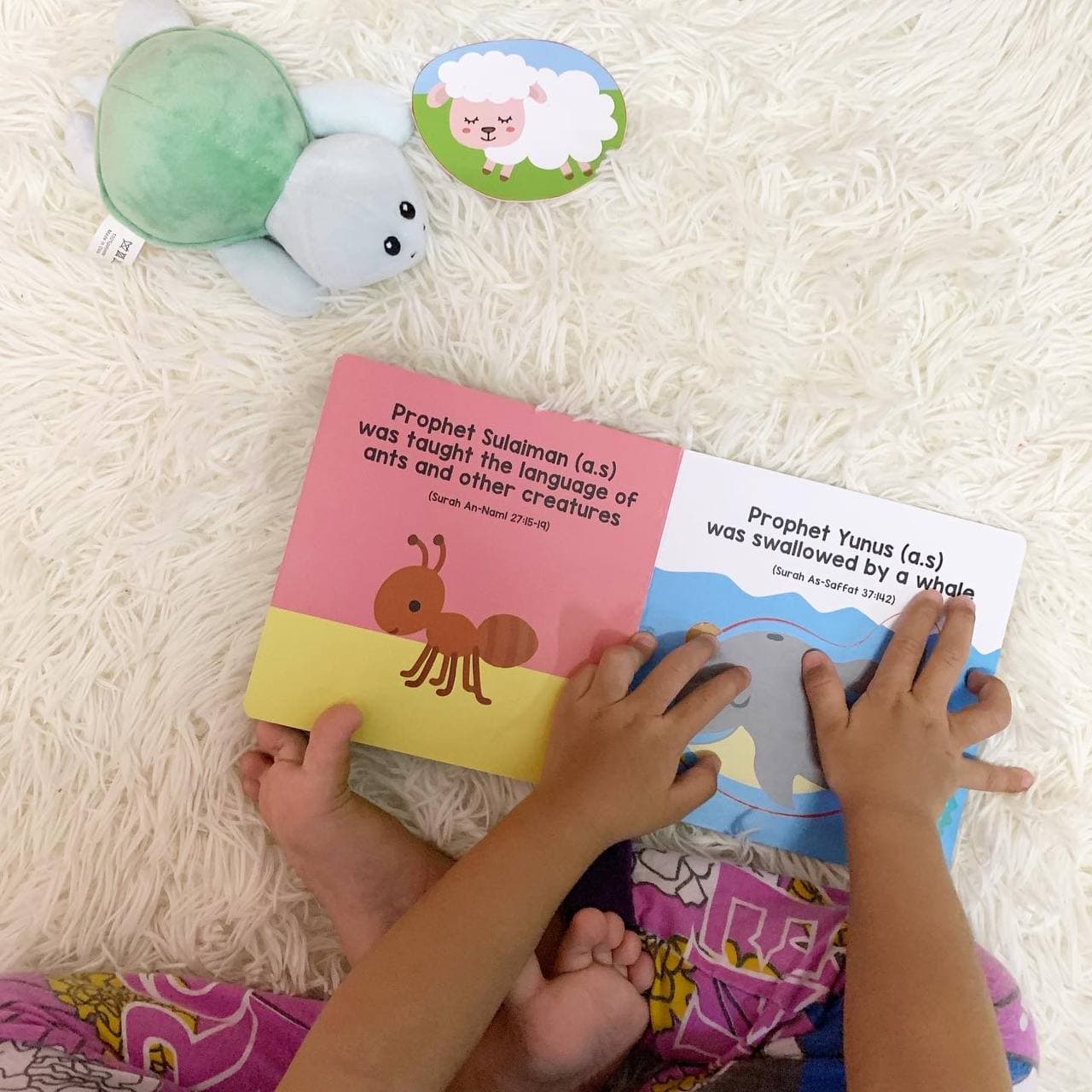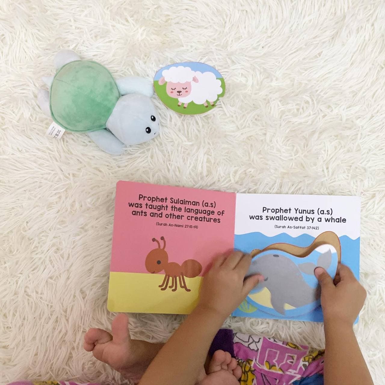 Babies’ brains are like sponges ya. Don’t be surprised when your baby would tell you simple prophet stories after 4 years! laugh their brain are absorbing everything going on around them. Plus, the book is interactive, MashaAllah!